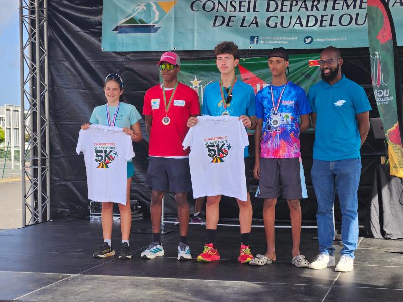 Pour cette 1ère édition qui a réuni un peu plus d'une centaine de coureurs, Camille PERCEBOIS (à gauche sur la photo) est 1ère Cadette et Championne de Guadeloupe. Elle réalise les mimimas qualificatifs pour les championnats de France (U18) en 21:36. Relève assurée !